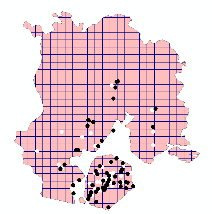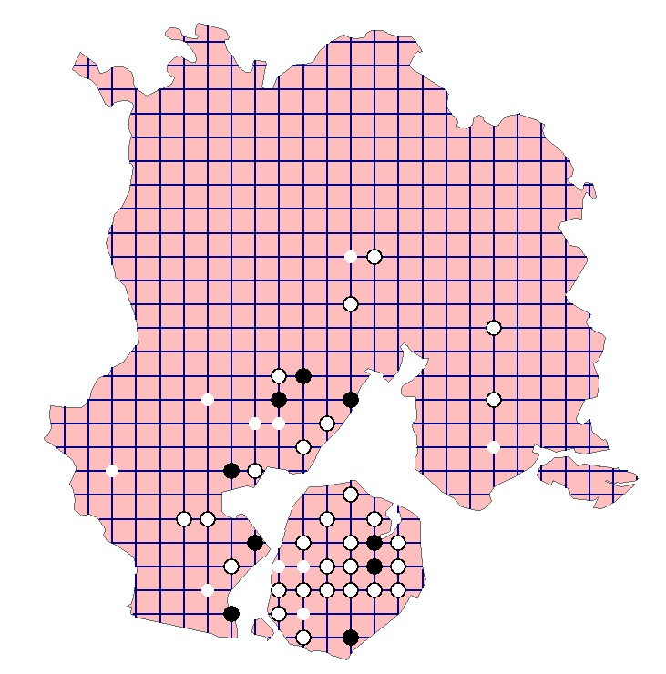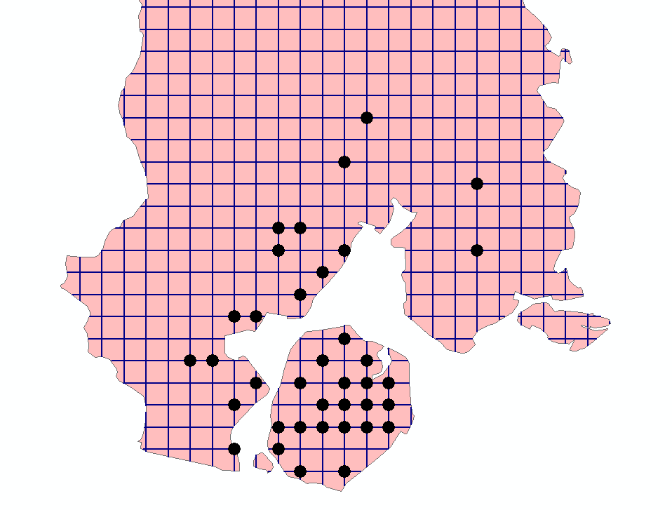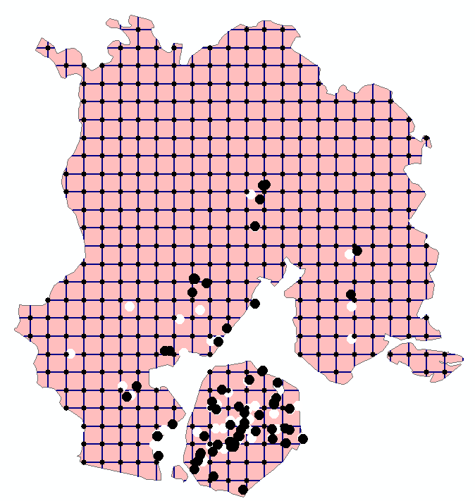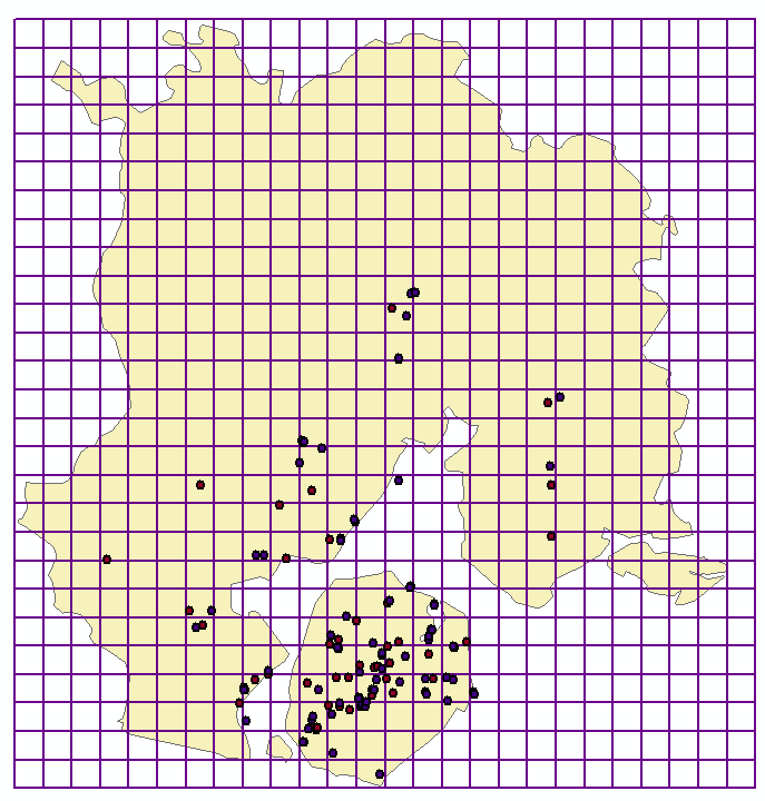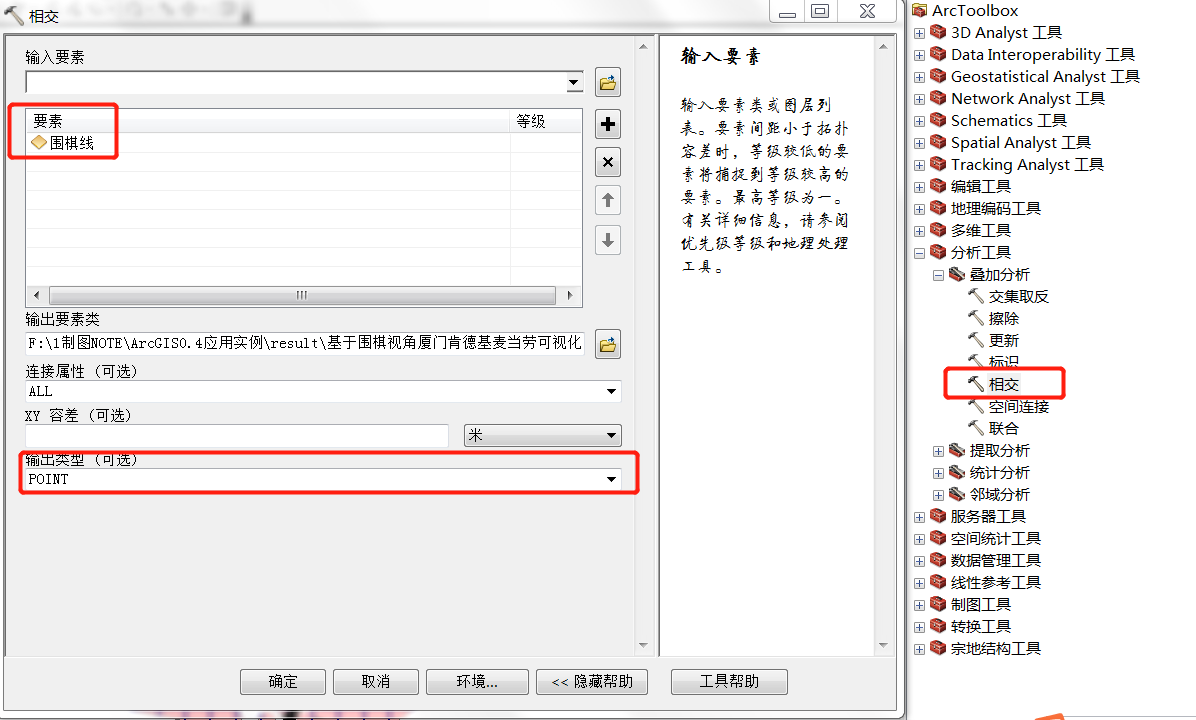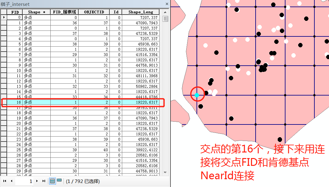 利用【分析工具】|【叠加分析】|【相交】生成渔网线(围棋线)的交点