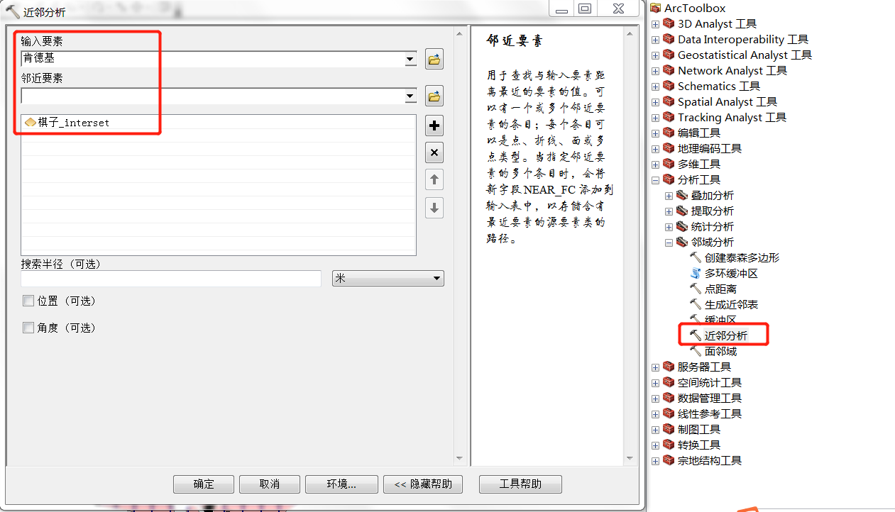 利用【分析工具】|【邻域分析】|【近邻分析】对肯德基POI和交点进行匹配