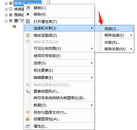 在相交点的图层上右键单击【连接与关联】|【连接】