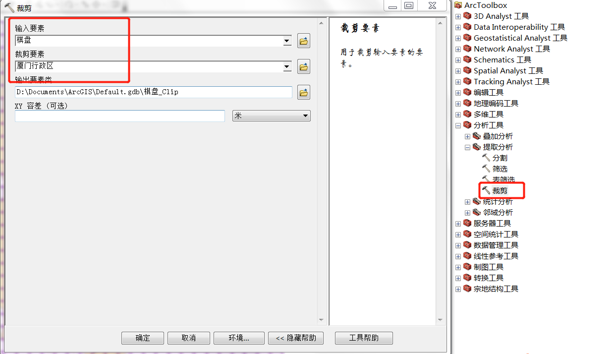 利用【分析工具】|【提取分析】|【裁剪】对矢量要素进行裁剪