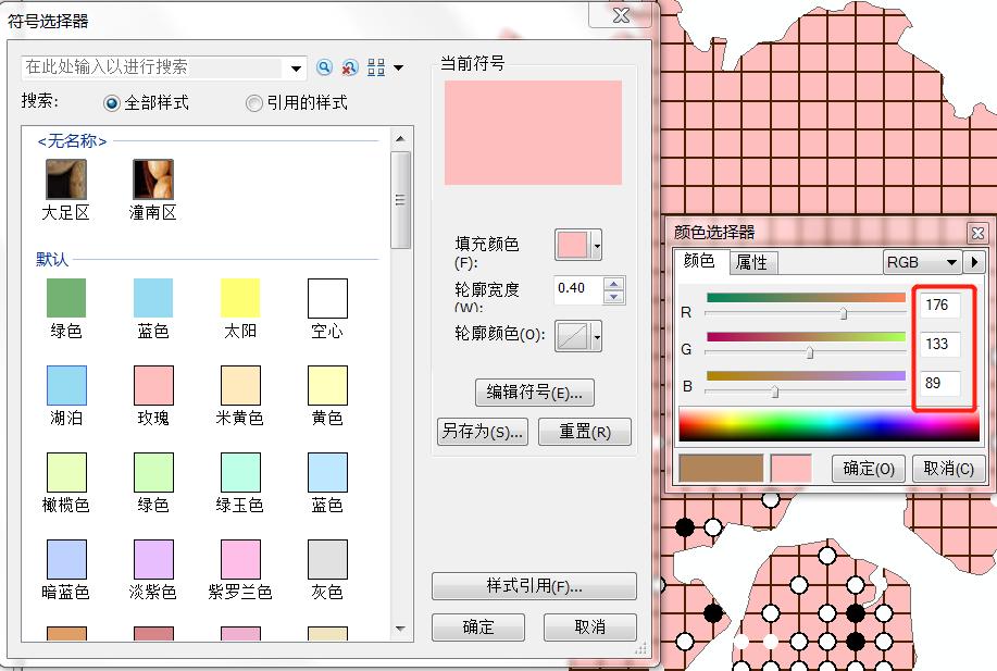 将厦门行政区颜色设置RGB(176,133,89)