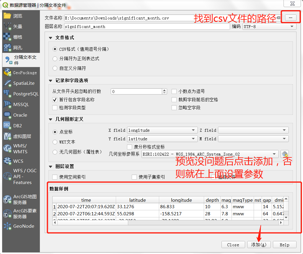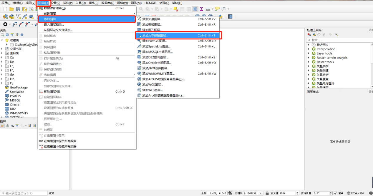 利用【图层】|【添加图层】|【添加文本数据】加载文本数据