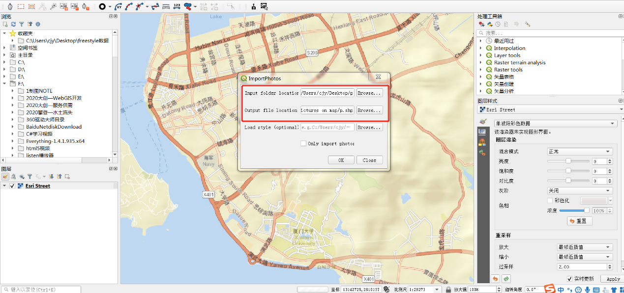 有时候我们去野外调研或者外出旅游时,会拍摄很多照片,这些照片能不能根据当时拍摄的位置在地图上重现呢?QGIS有个【ImportPhotos】插件可以实现这个功能,使我们能更好的知道实时的所在的位置。