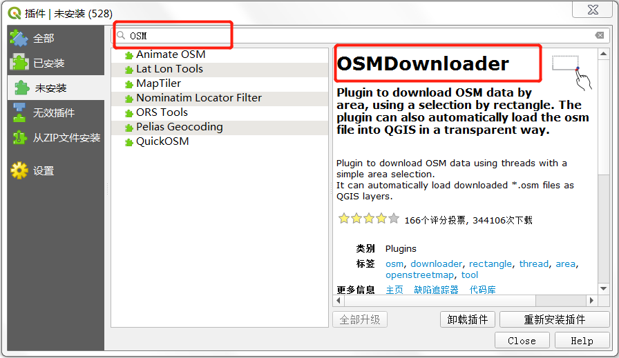 如果不想手动创建矢量数据,有什么办法可以下载免费的数据呢?这节实验将介绍QGIS中矢量数据的下载,比较简单,主要是利用OSMDownloader插件,不过小技巧很好用。