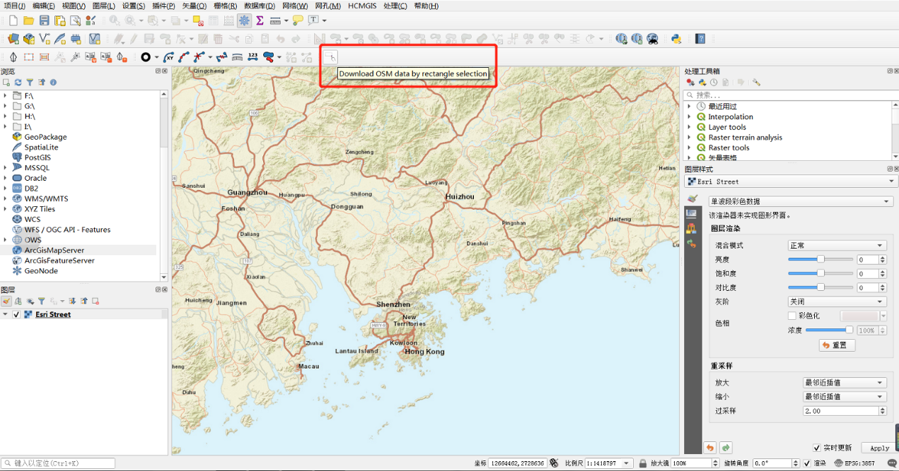 加载一个底图让我们利用【OSMDownloader】进行矢量化