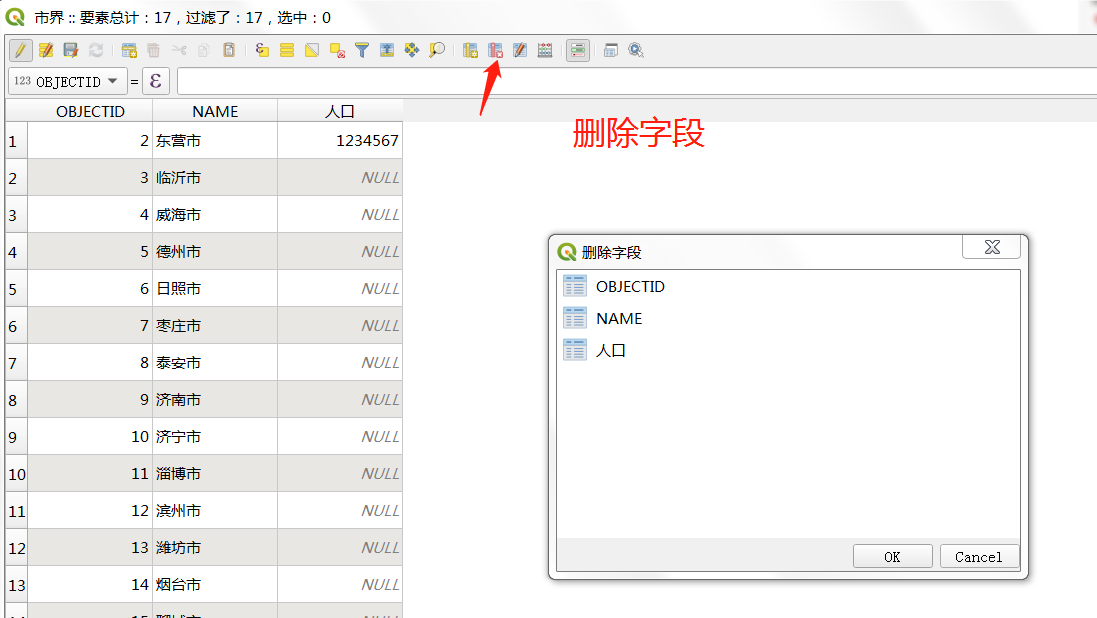 在菜单栏上点击【删除字段】选择要删除的字段进行删除即可