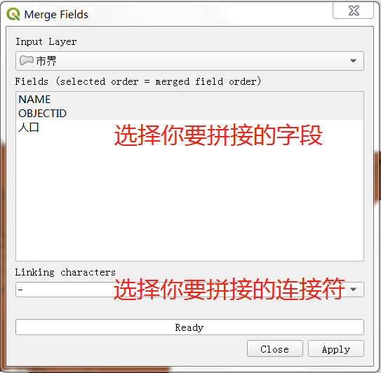 在菜单栏上插件【HCMGIS】|【Calculate Field】|【Merge Fields】设置要拼接的字段以及拼接符即可
