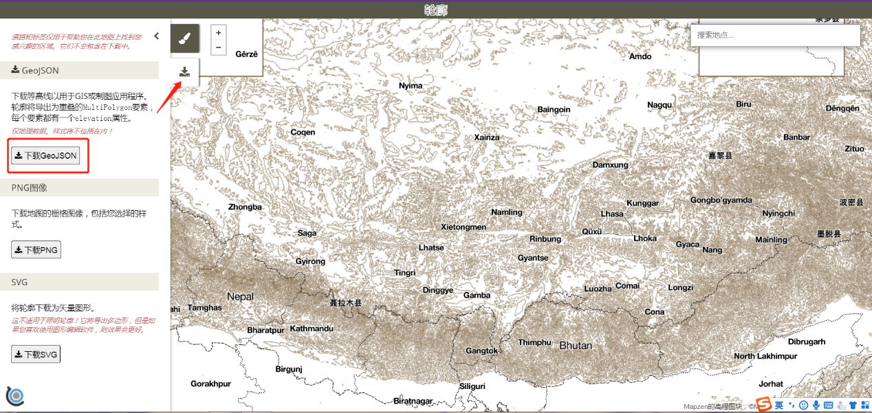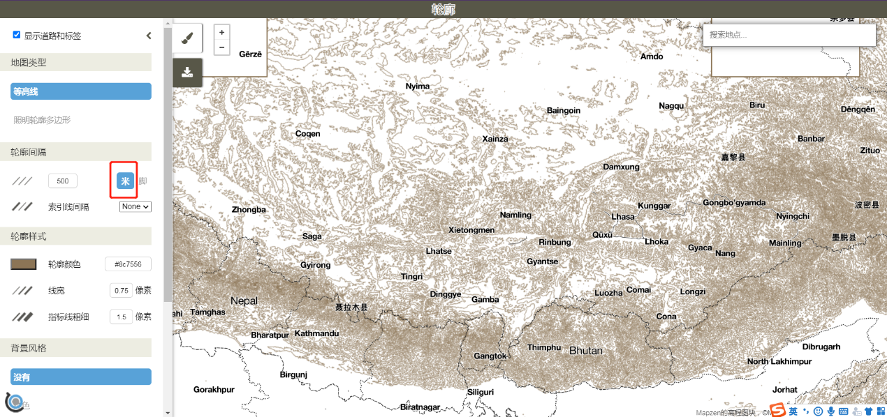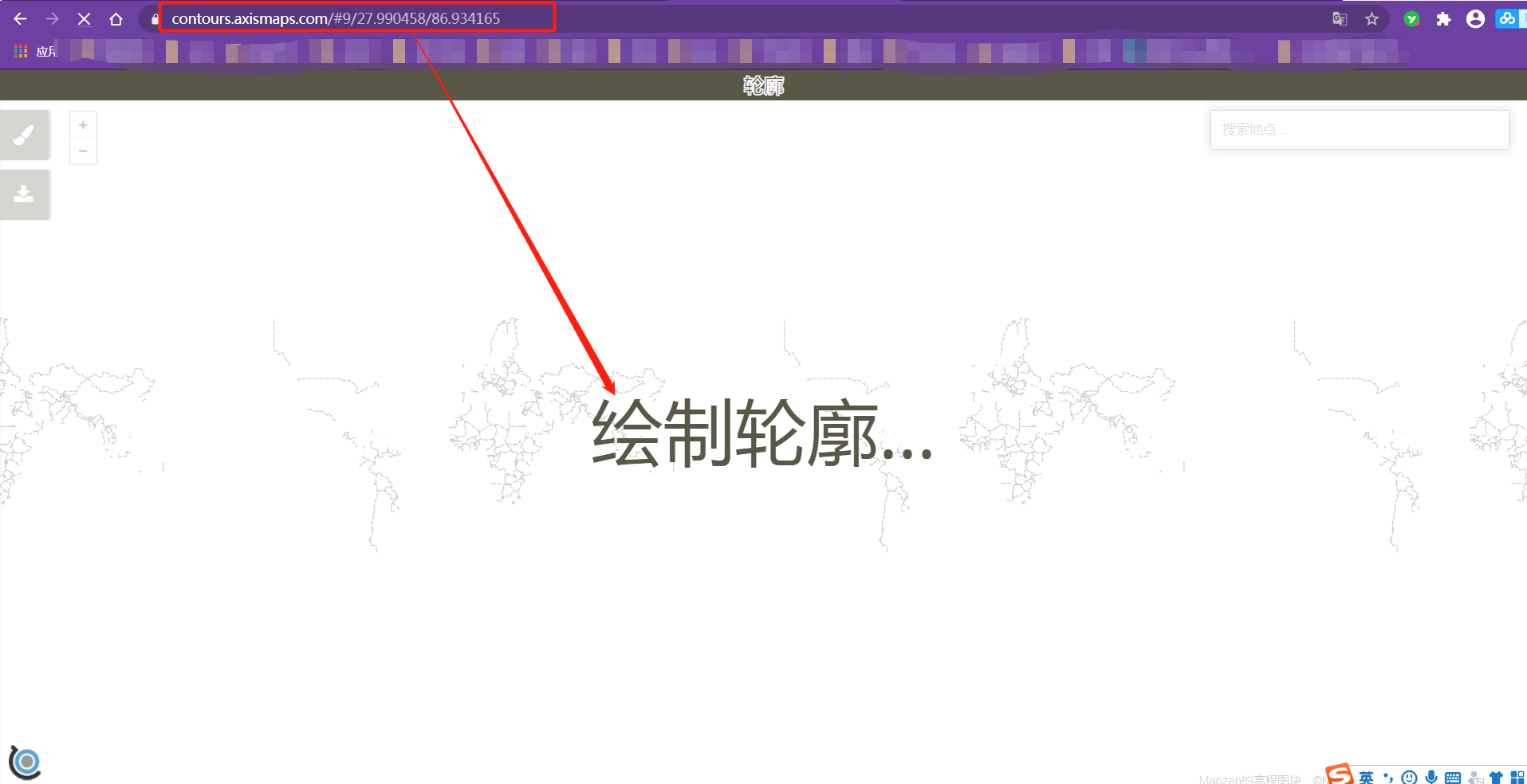 然后根据经纬度大小相应的改动网址,等待绘制等高线