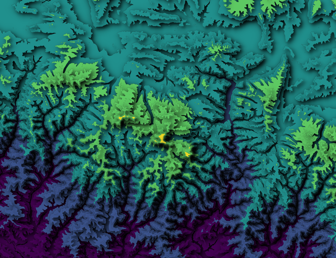 本实验将介绍两种等高面的制作方法,旨在掌握等高面的可视化表达,掌握DEM数据转等高线及等高线的提取、转面、拆分及配色。